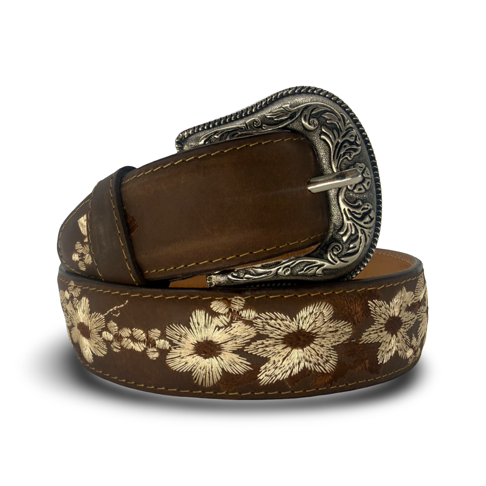 Floral Embroidered Leather Belt